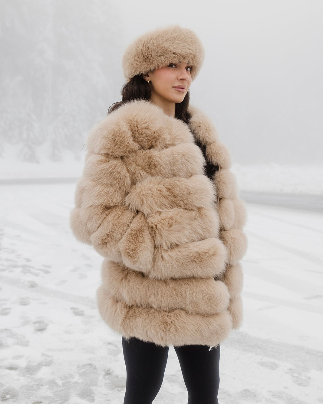 For the versatile icons. The Aspen 3-in-1 is crafted from 100% fox fur and designed with a unique modular silhouette that adapts to your look. With concealed hook fastenings, side slip pockets, and a fully detachable zipper construction, this coat can be worn cropped, mid-length, or full-length — making it the ultimate statement in functional luxury.