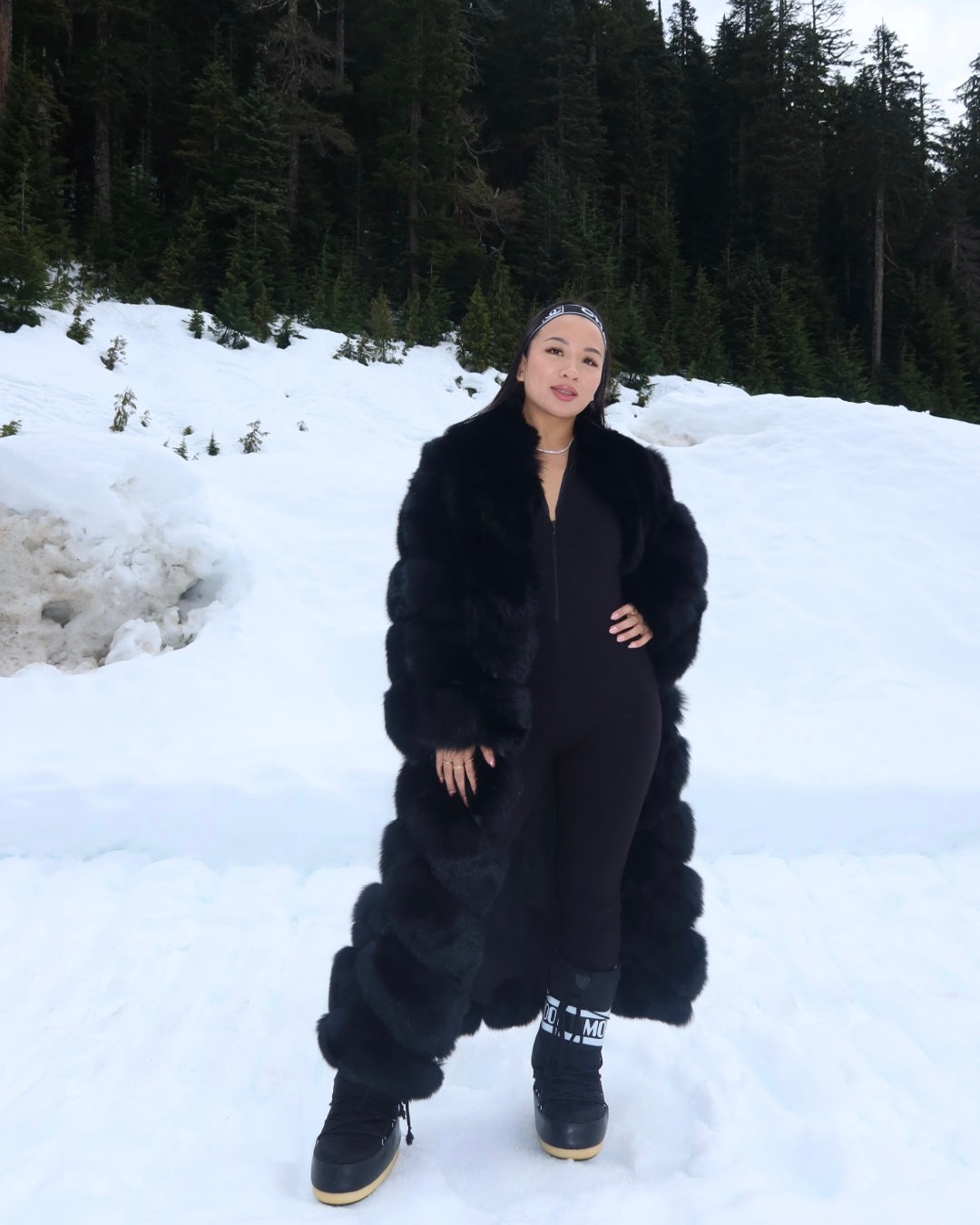 The Banff is a full-length statement in plush fox fur. Designed with a voluminous silhouette and concealed front hook closures, it delivers warmth, texture, and timeless luxury in every detail.