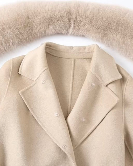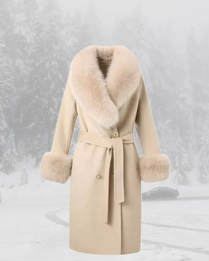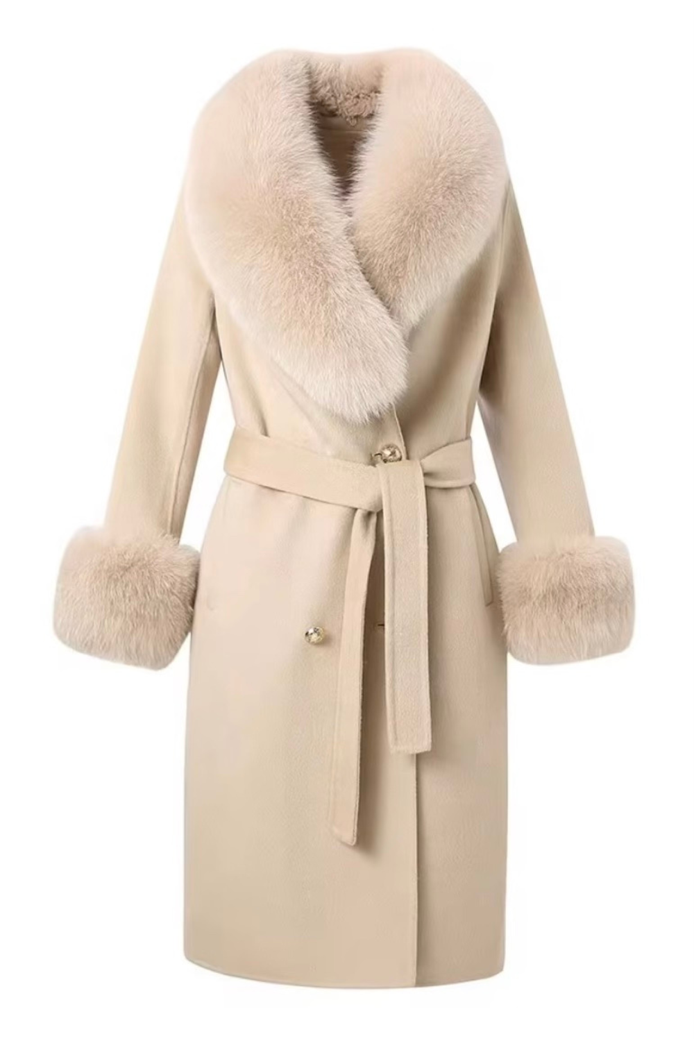 The Kensington is cut from the finest wool and trimmed with plush fox fur, creating an instant showstopper. The luxe fur collar and cuffs frame the silhouette with timeless elegance, while gold buttons and a self-tie belt bring a polished finish. Designed with removable fur for easy dry cleaning, this piece blends practicality with high-end style. Perfect for both statement moments and classic wear.