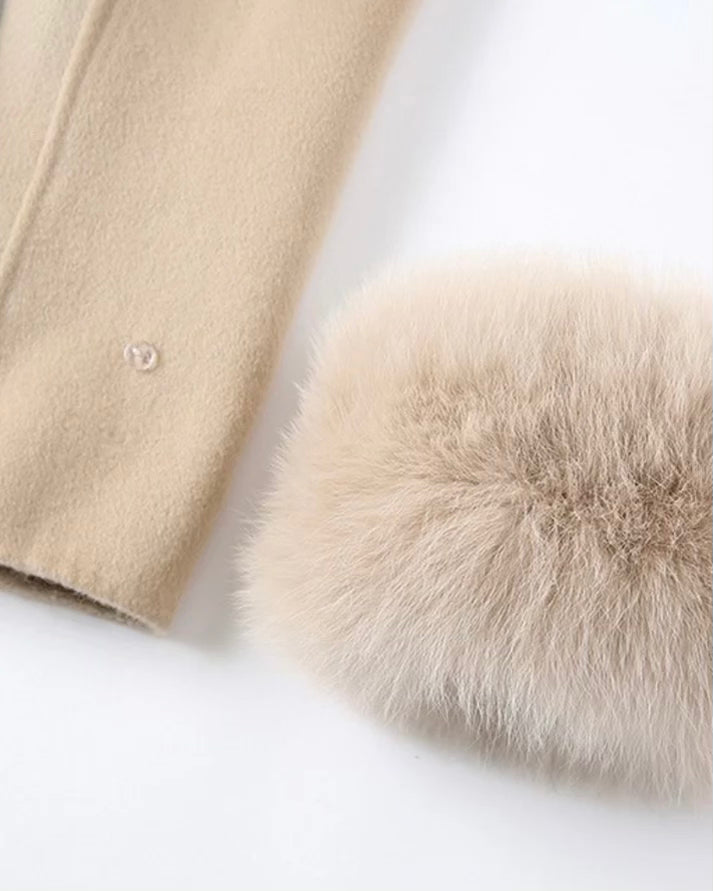 - Shell: 100% Wool; Trim: 100% Fox Fur